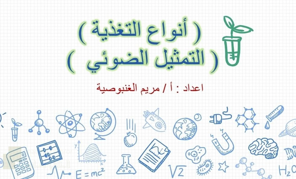 ملخص أنواع التغذية درس التمثيل الضوئي - إعداد: مريم الغنبوصية