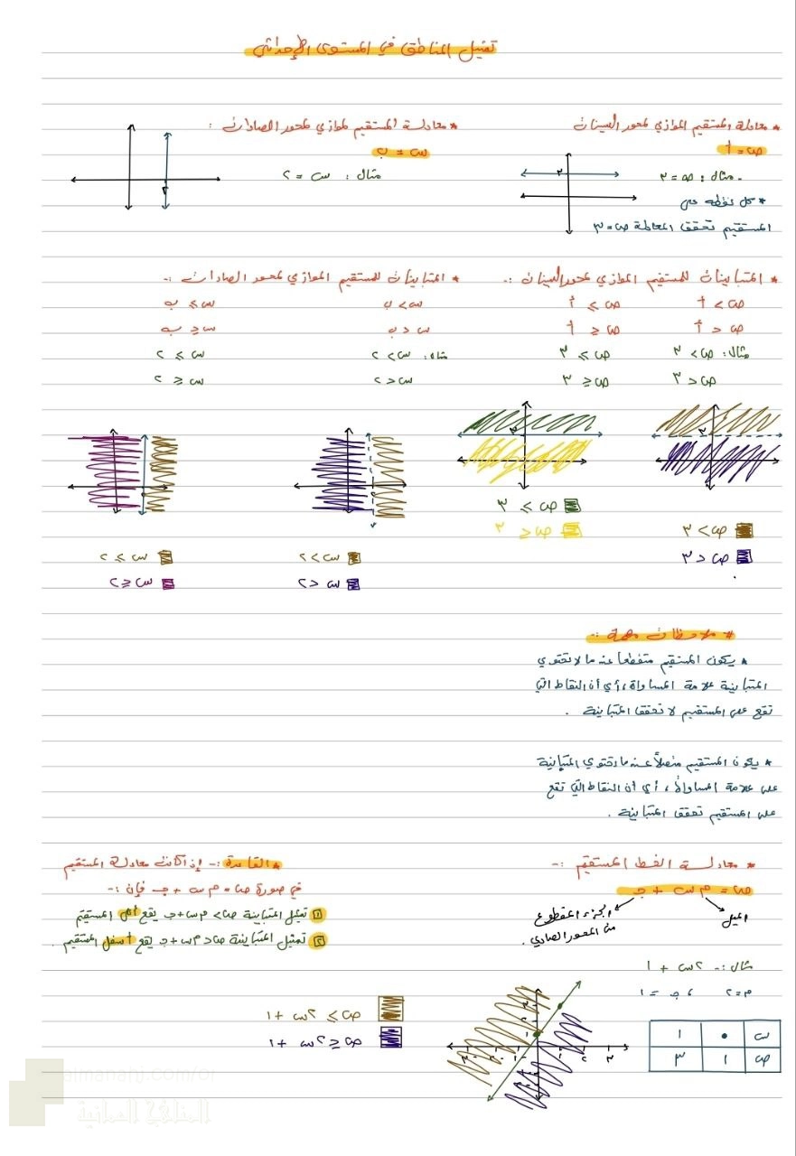 ملخص درس تمثيل المناطق في المستوى الإحداثي بخط اليد - إعداد: قيس الزعابي