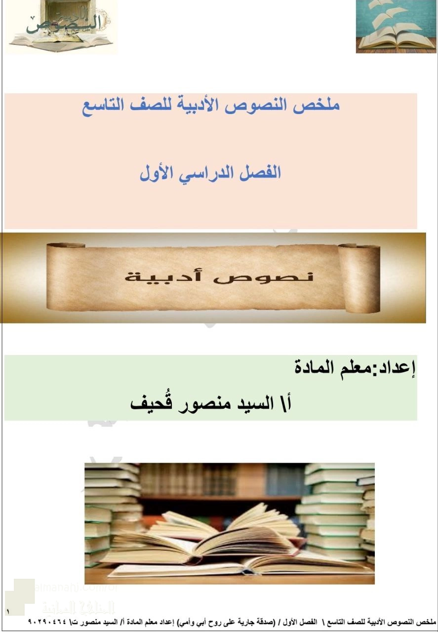 ملخص شامل للنصوص الأدبية - إعداد: السيد منصور قحيف