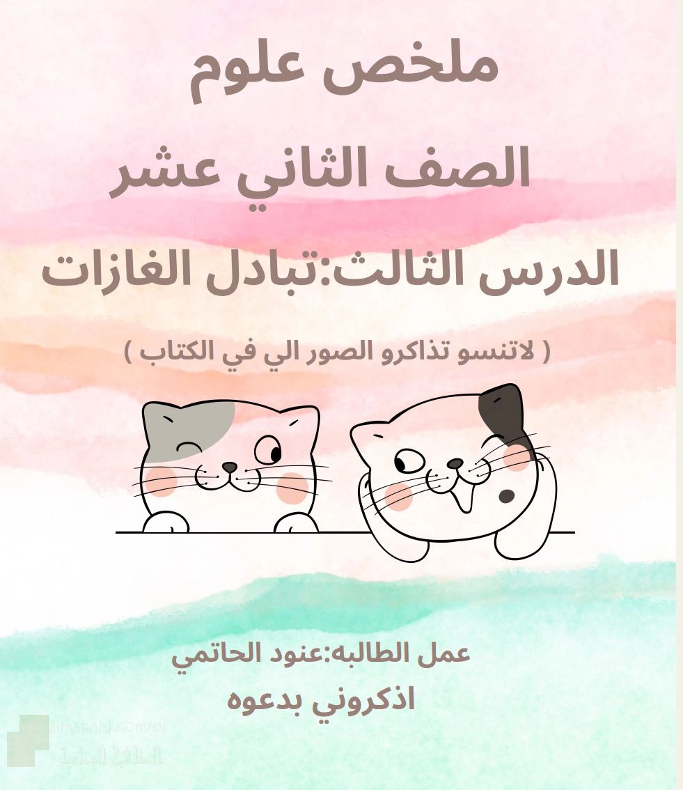 معلومات الملف: نرفق لكم ملف يتضمن ملخص شرح درس تبادل الغازات ويشمل: