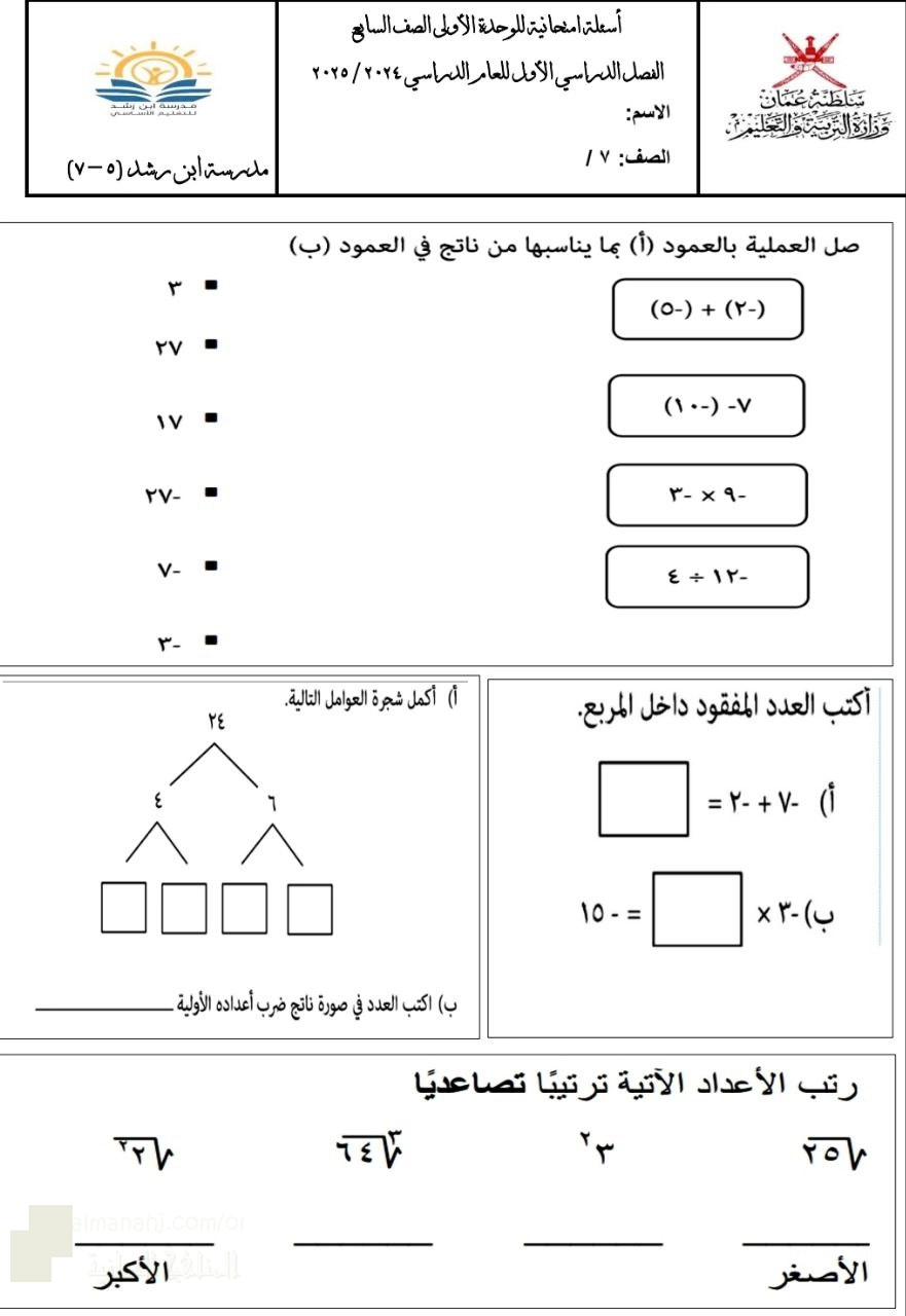 7. الصف الخامس, تربية اسلامية, تجميع اختبارات و امتحانات اسلامية