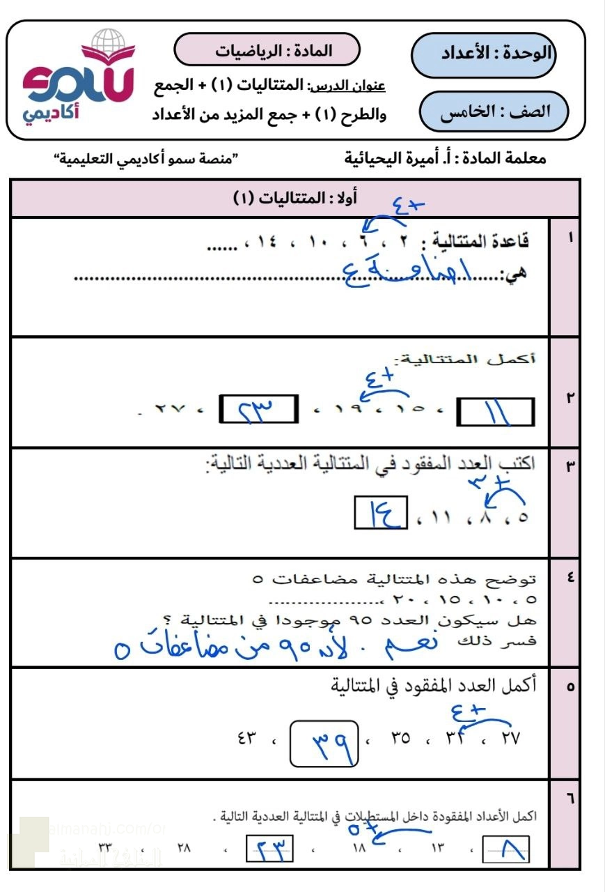 7. الصف الخامس, رياضيات, كراسة و مذكرة الرياضيات