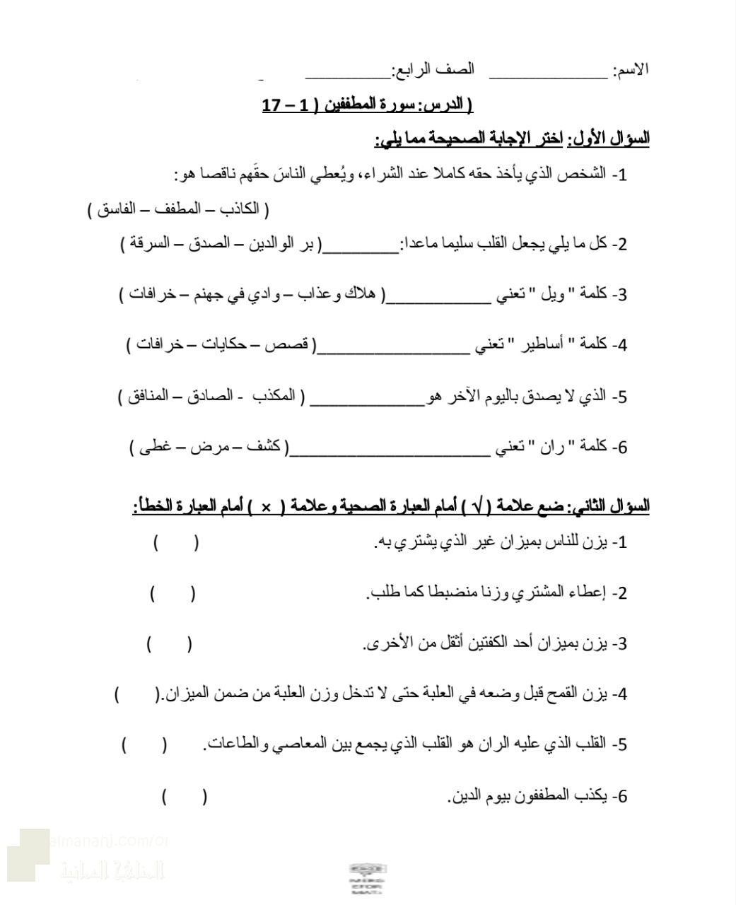 سورة المطففين ( ١ ـ ١٧ )