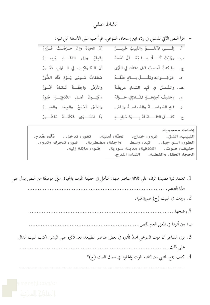6. الصف الخامس, لغة عربية, عرض بوربوينت حل أسئلة المناقشة والتحليل لدرس سر الوجود