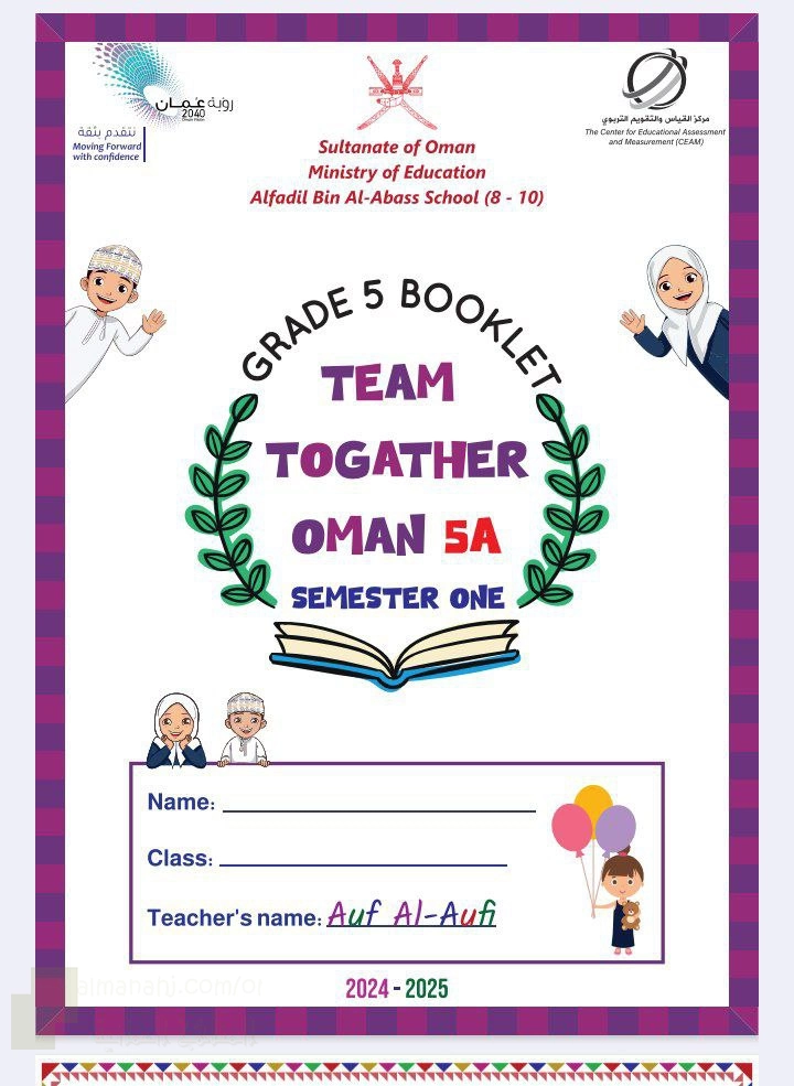 أنت هنا: موقع المناهجالمناهج العمانية الصف الخامس لغة انجليزية الفصل الأول مذكرات وبنوك