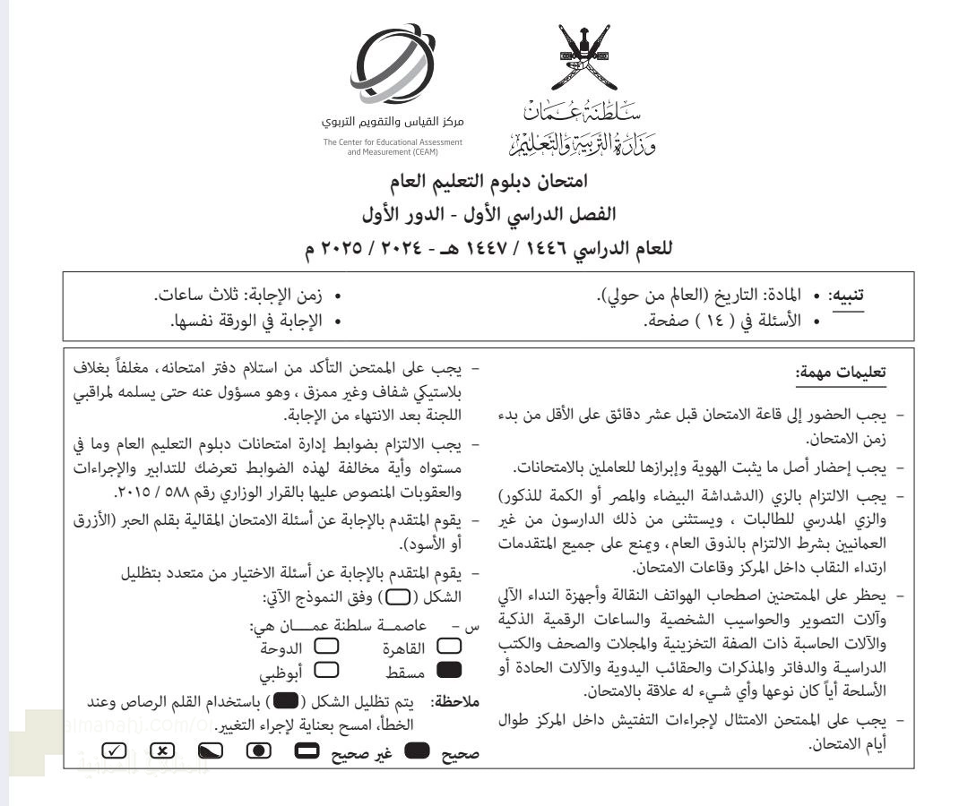تنويه: المناهج العمانية هو موقع مجاني وغير رسمي ولا يتطلب اشتراك لتحميل الملفات، لذلك يرجى عدم دفع أي مبلغ أو الاشتراك من أجل تحميل الملفات.