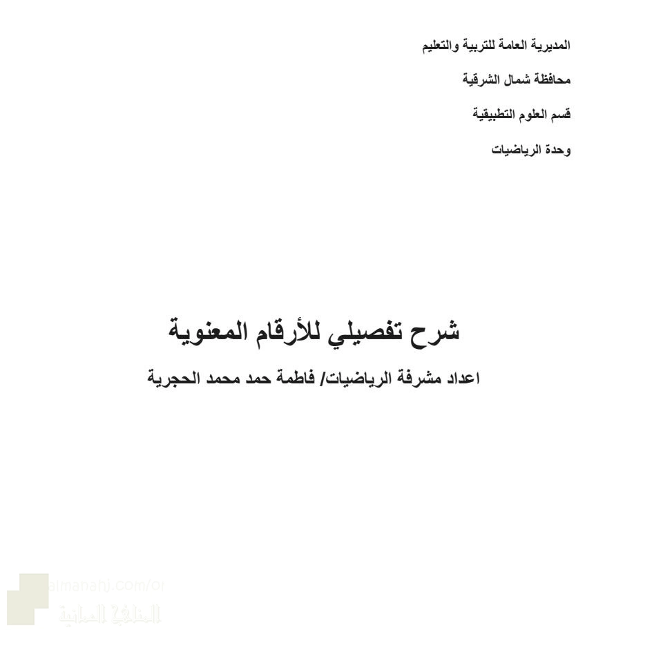 شرح تفصيلي للأرقام المعنوية - إعداد: فاطمة حمد محمد الحجرية