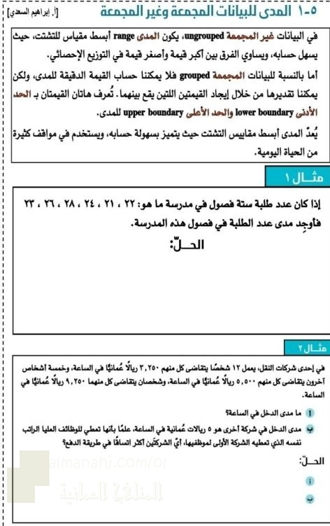 مذكرة تدريبية للوحدة الخامسة (مقاييس التشتت) - إعداد: إبراهيم السعدي