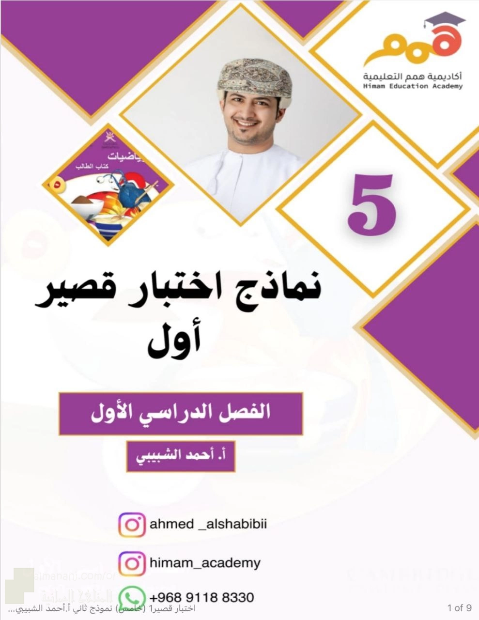 اختبار قصير أول نموذج ثاني 2026-2025م, أحمد الشبيبي, الصف الخامس, رياضيات, الفصل الأول, 2025/2026 - المناهج العمانية