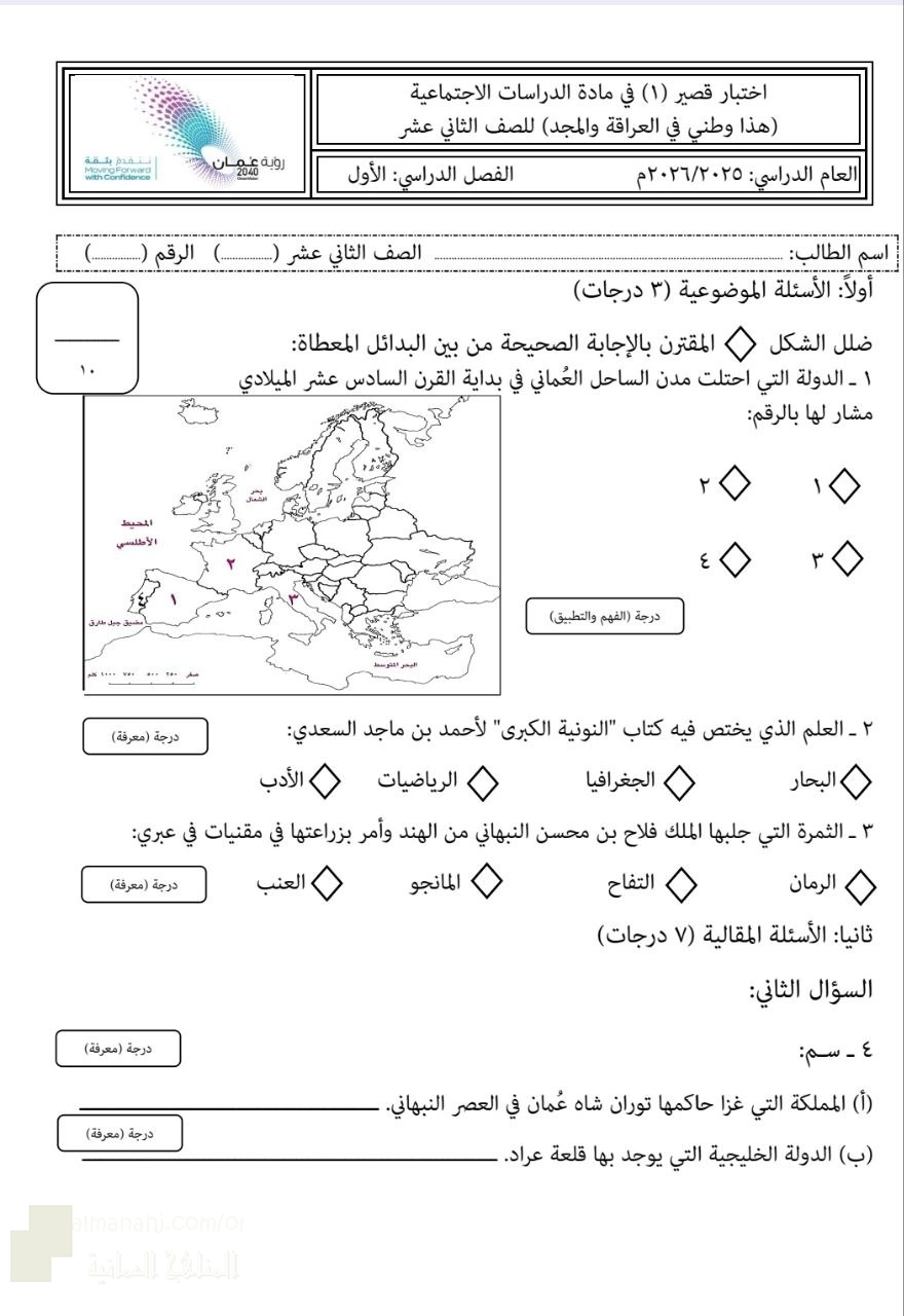 أنت هنا: موقع المناهجالمناهج العمانية الصف الثاني عشر هذا وطني الفصل الأول اختبارات