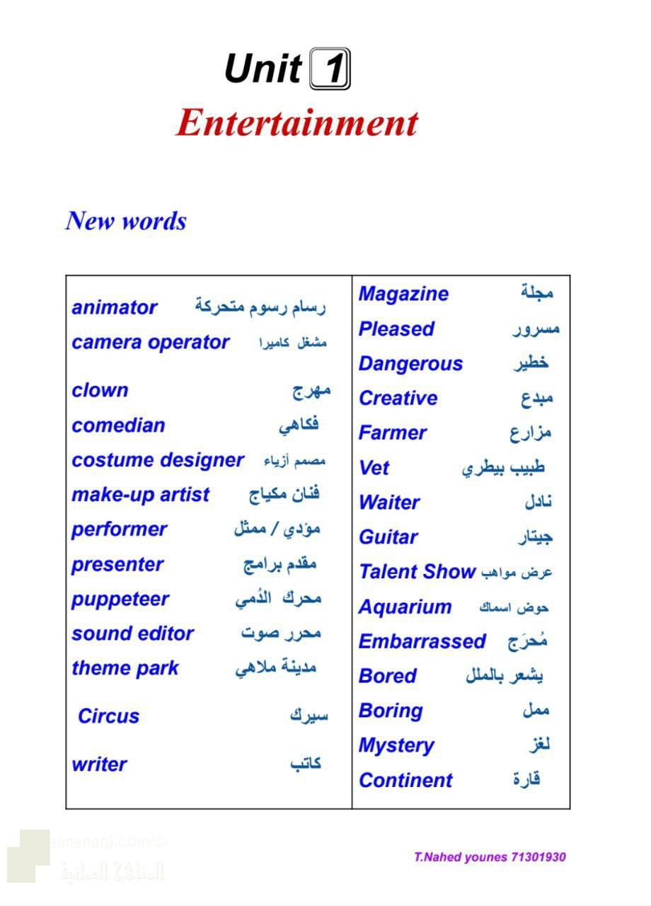 تم إيجاد الملف: مراجعة الوحدة الأولى Entertainment