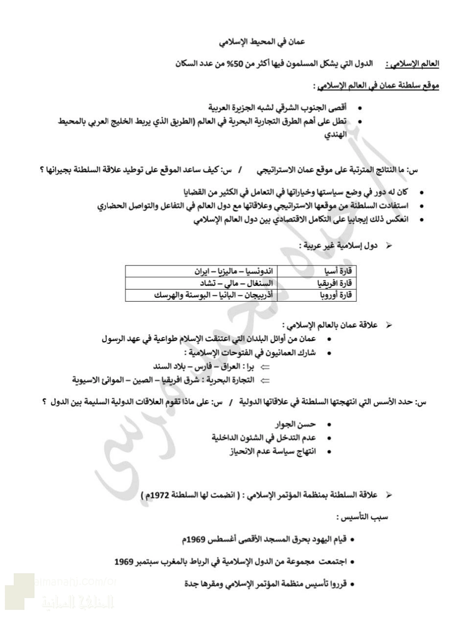 معلومات الملف: أعزائي الطلبة نقدم لكم ملف يتضمن ملخص درس عمان في المحيط الإسلامي ويشمل: موقع سلطنة عمان في العالم الإسلامي علاقة عمان بالعالم الإسلامي المساعدات الإنسانية العمانية للعالم الإسلامي عمان في محيطها العالمي عمان و العولمة