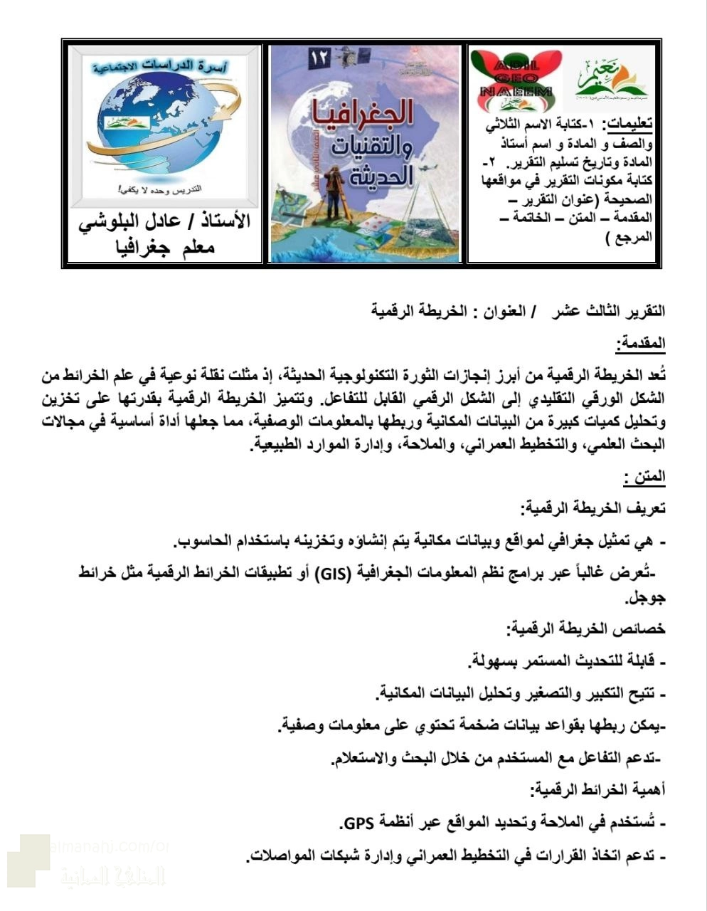 13. الصف الثاني عشر, جغرافيا, التقرير الثالث عشر عن الخريطة الرقمية