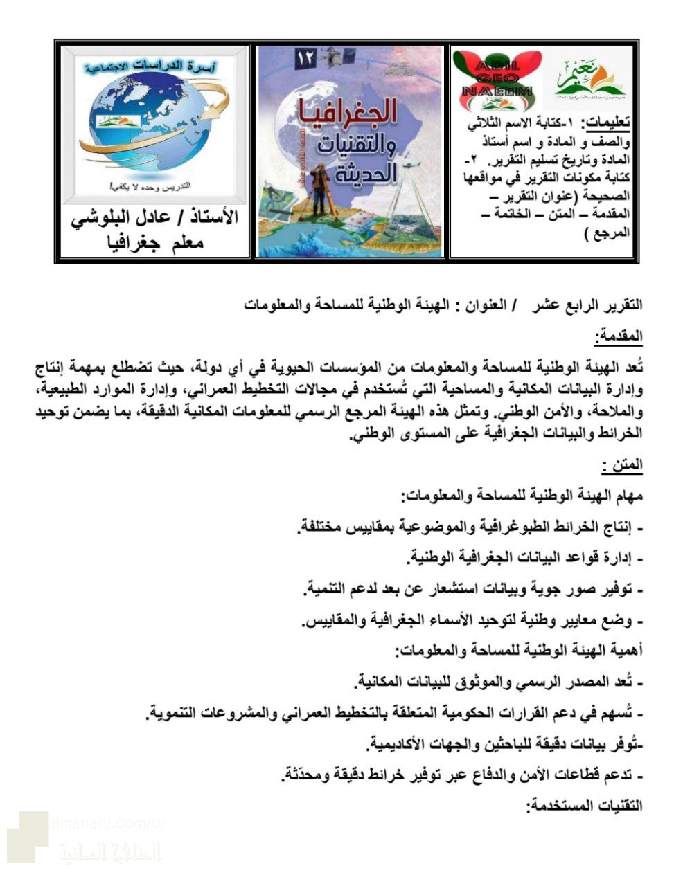 12. الصف الثاني عشر, جغرافيا, التقرير الرابع عشر عن الهيئة الوطنية للمساحة والمعلومات