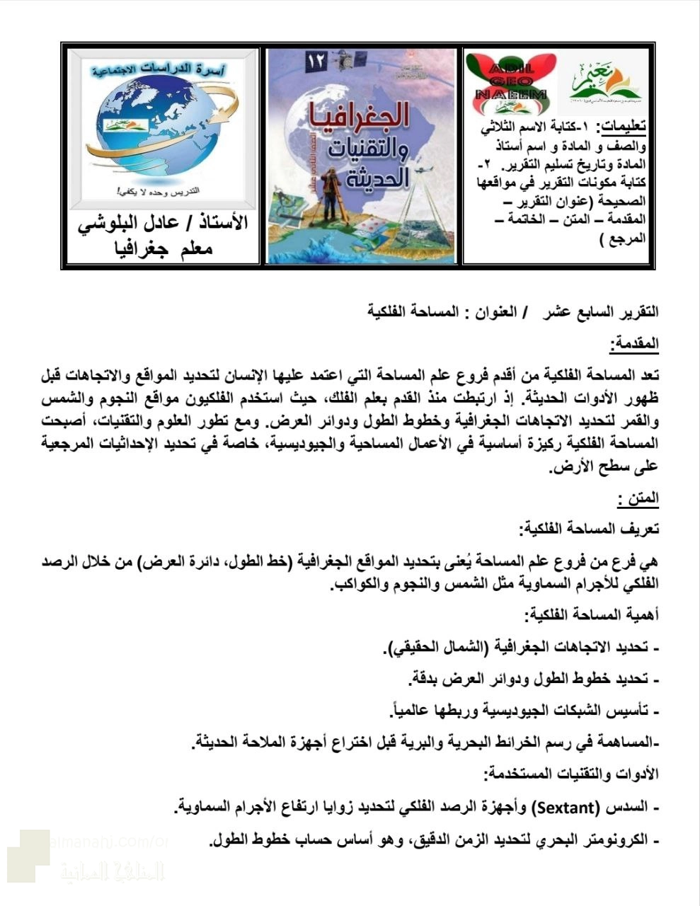 6. الصف الثاني عشر, جغرافيا, التقرير العشرون بعنوان نقاط التحكم الأرضي