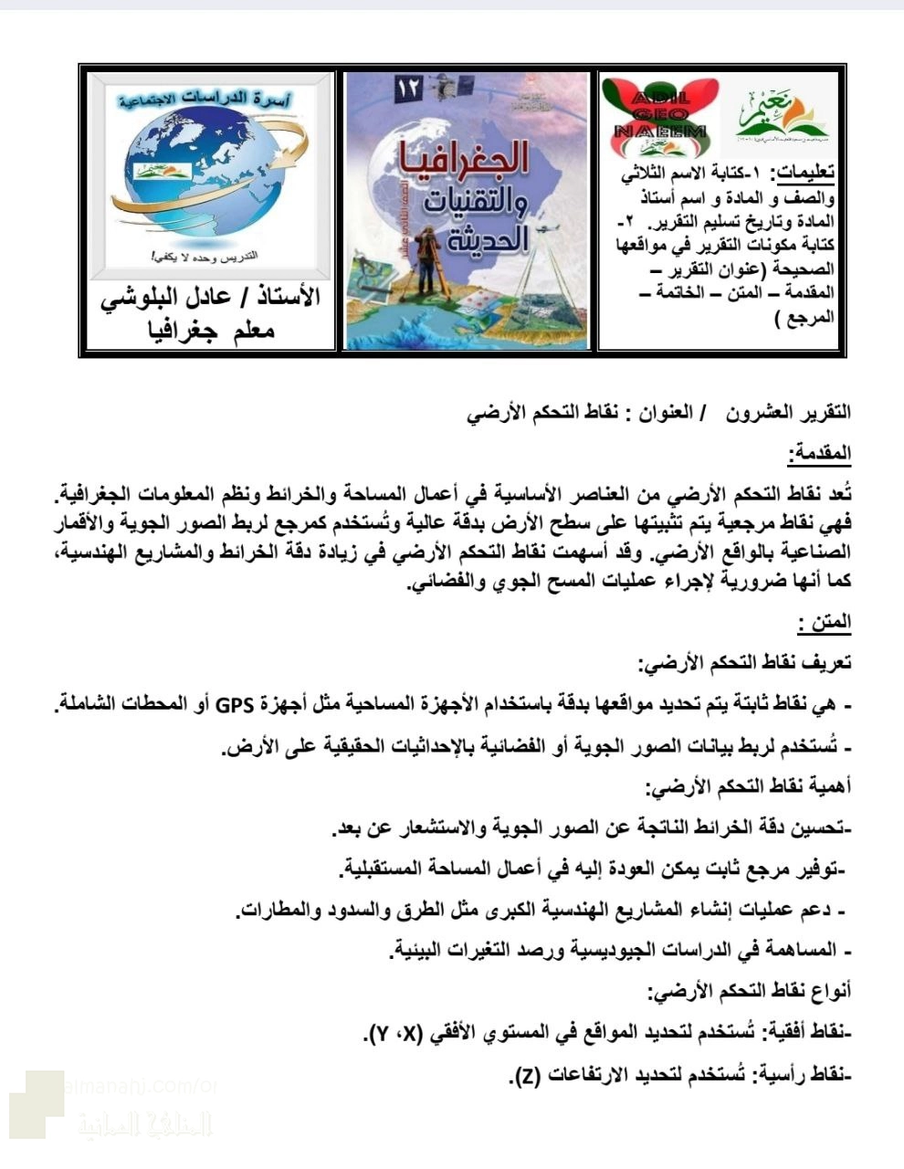 6. الصف الثاني عشر, جغرافيا, التقرير العشرون بعنوان نقاط التحكم الأرضي