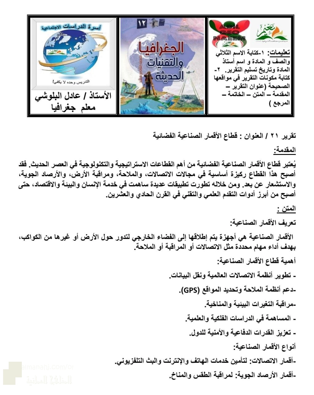 5. الصف الثاني عشر, جغرافيا, التقرير (٢١) عن قطاع الأقمار الصناعية الفضائية