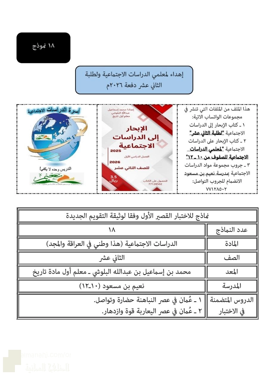 أنت هنا: موقع المناهجالمناهج العمانية الصف الثاني عشر هذا وطني الفصل الأول اختبارات