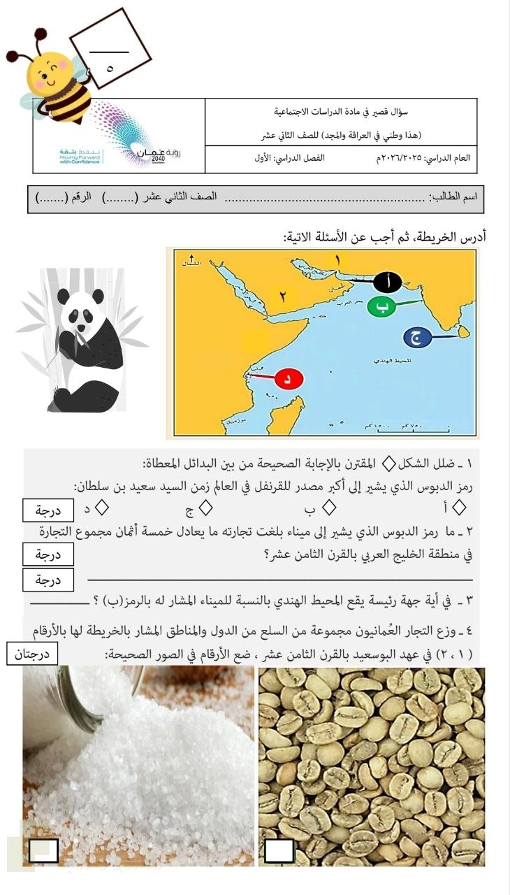 7. الصف التاسع, اجتماعيات, مراجعة عامة على الوحدة الثانية التواجد العماني في شرق افريقيا