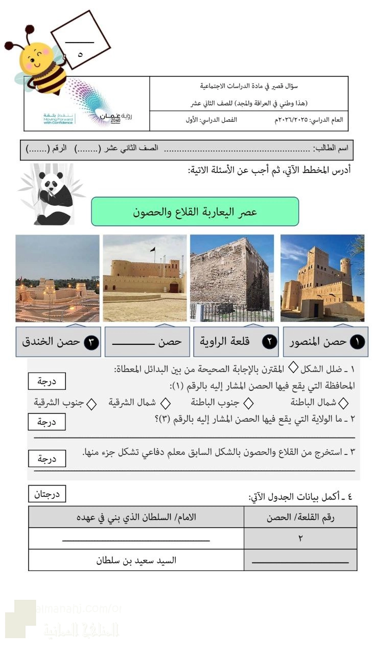 تم إيجاد الملف: سؤال قصير نموذج رابع حول درس عمان في عصر البوسعيد وحدة ومنجزات