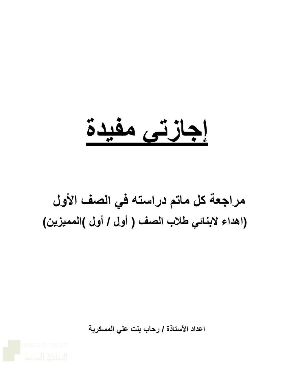 ملف مراجعة كل ماتم دراسته في الصف الأول (إجازتي مفيدة) - إعداد: رحاب بنت علي المسكرية