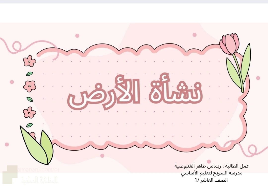 ملخص درس نشأة الأرض - إعداد: الطالبة ريماس طاهر الغنبوصية
