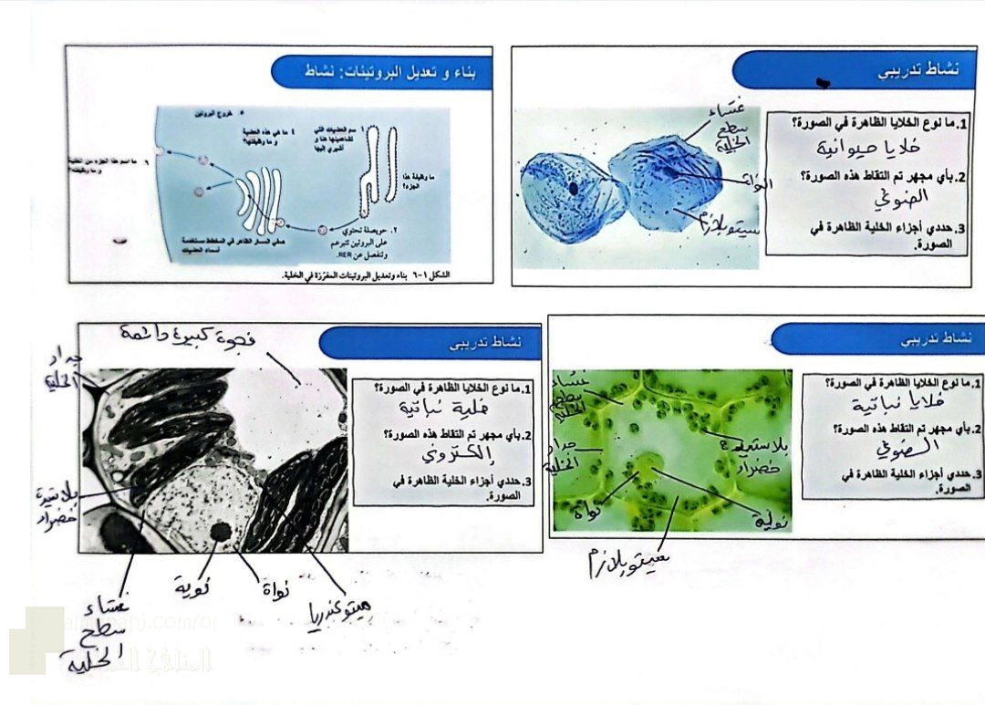 نشاط تدريبي وأسئلة على درس تركيب الخلية