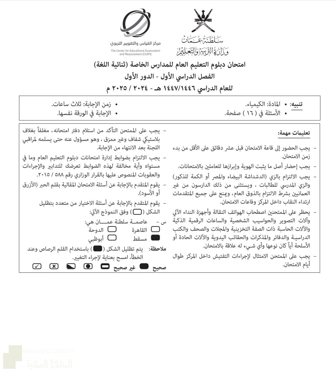 أنت هنا: موقع المناهجالمناهج العمانية الصف الثاني عشر كيمياء الفصل الأول الامتحان النهائي