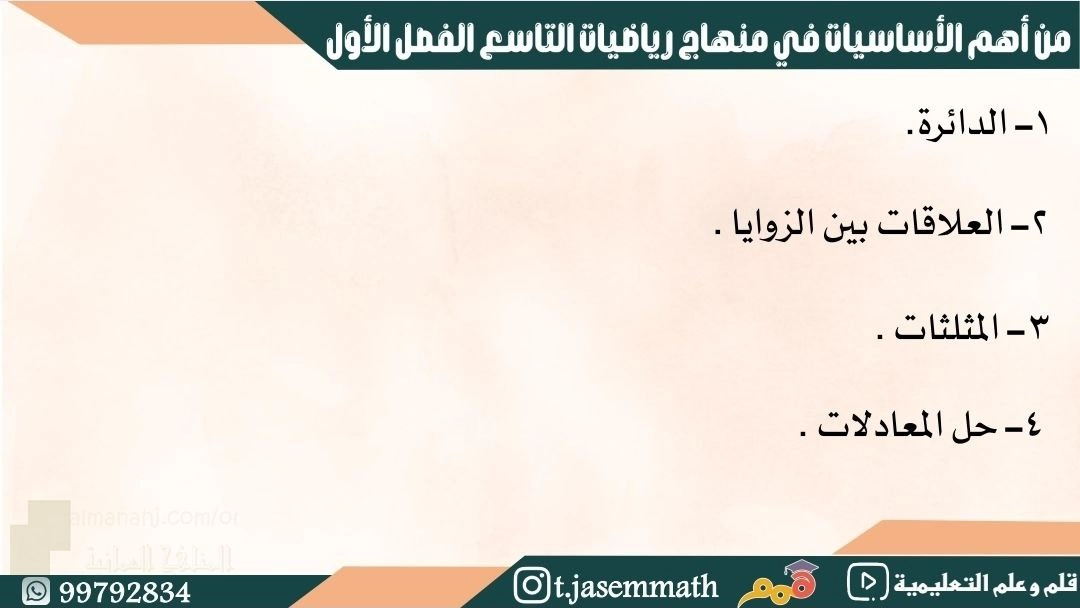 أحدث ملفات الصف التاسع, رياضيات, الفصل الأول