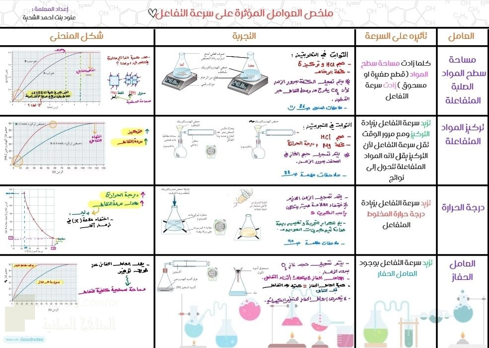 ملخص العوامل المؤثرة على سرعة التفاعل - إعداد: عنود بنت أحمد الشحية