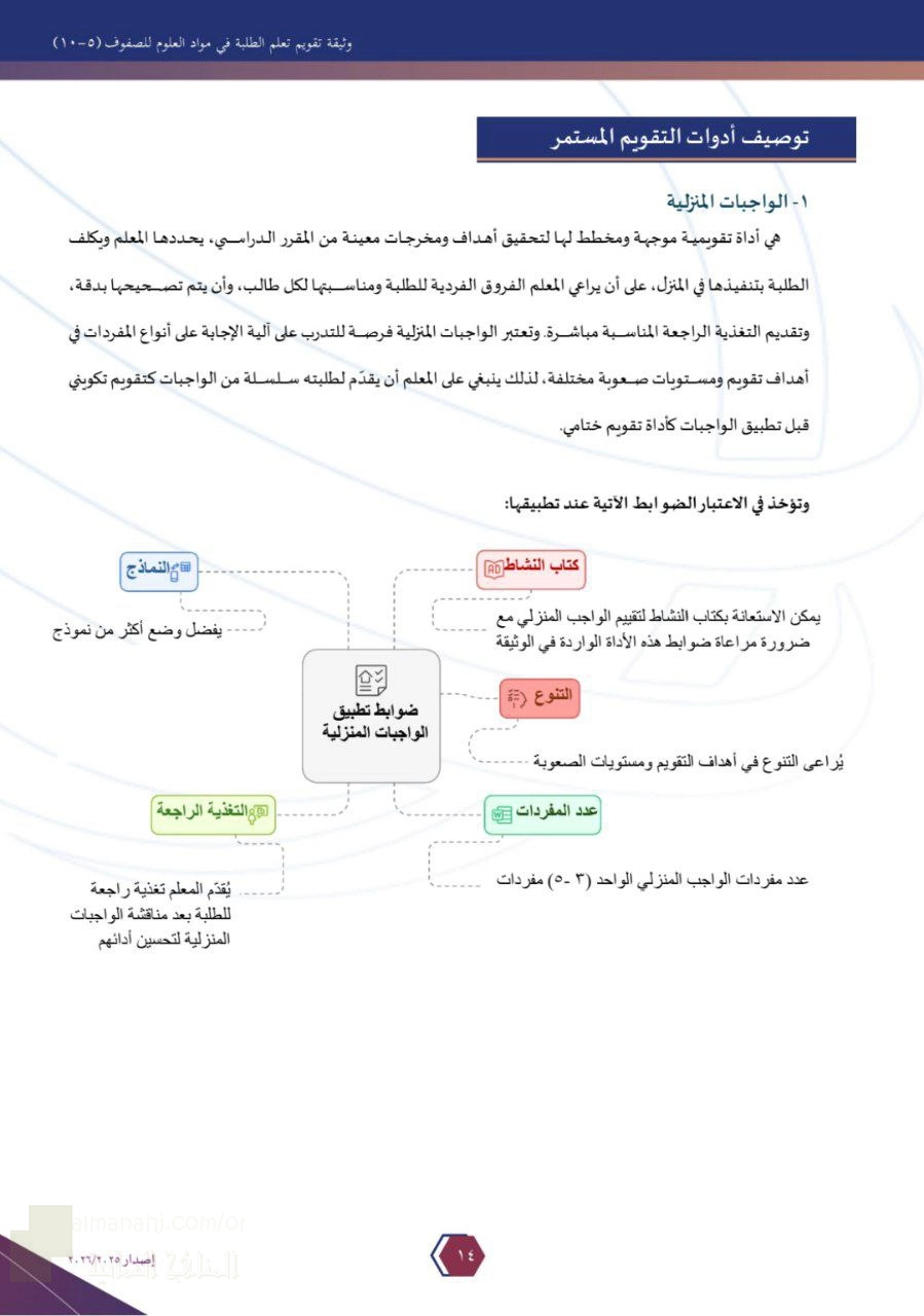 2. النشرة التوجيهية لمادة العلوم لجميع الصفوف