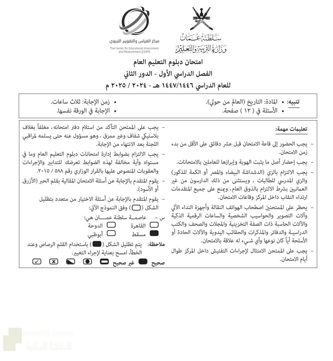 4. أسئلة وإجابات امتحان دبلوم التعليم العام الدور الأول
