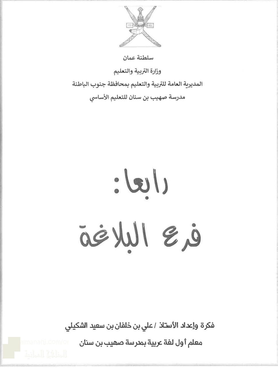 7. الصف الثاني عشر, لغة عربية, كراسة امتحانية مع نماذج الإجابة في فرع البلاغة