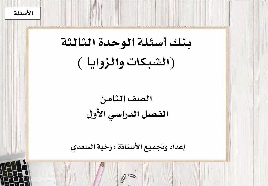 9. الصف الثامن, رياضيات, بنك أسئلة الوحدة الثالثة الشبكات والزوايا