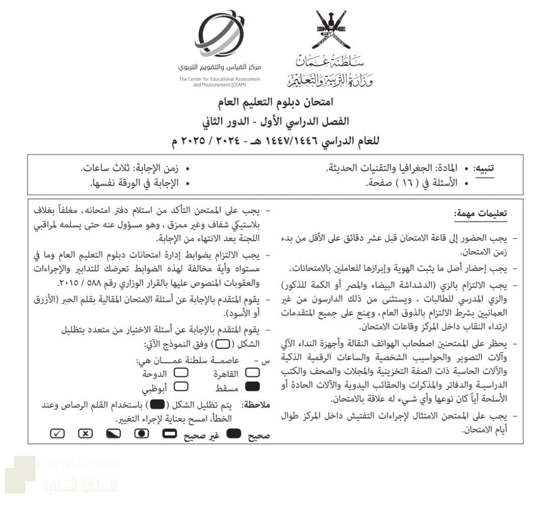 أنت هنا: موقع المناهجالمناهج العمانية الصف الثاني عشر جغرافيا الفصل الأول الامتحان النهائي