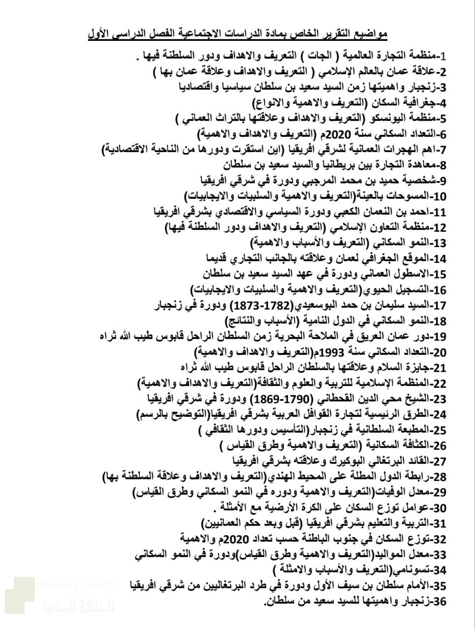 15. الصف السابع, لغة عربية, السؤال القصير التجريبي بمحافظة مسقط
