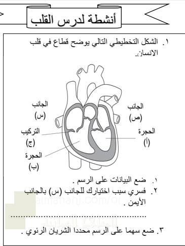 11. الصف العاشر, أحياء, أنشطة لدرس القلب