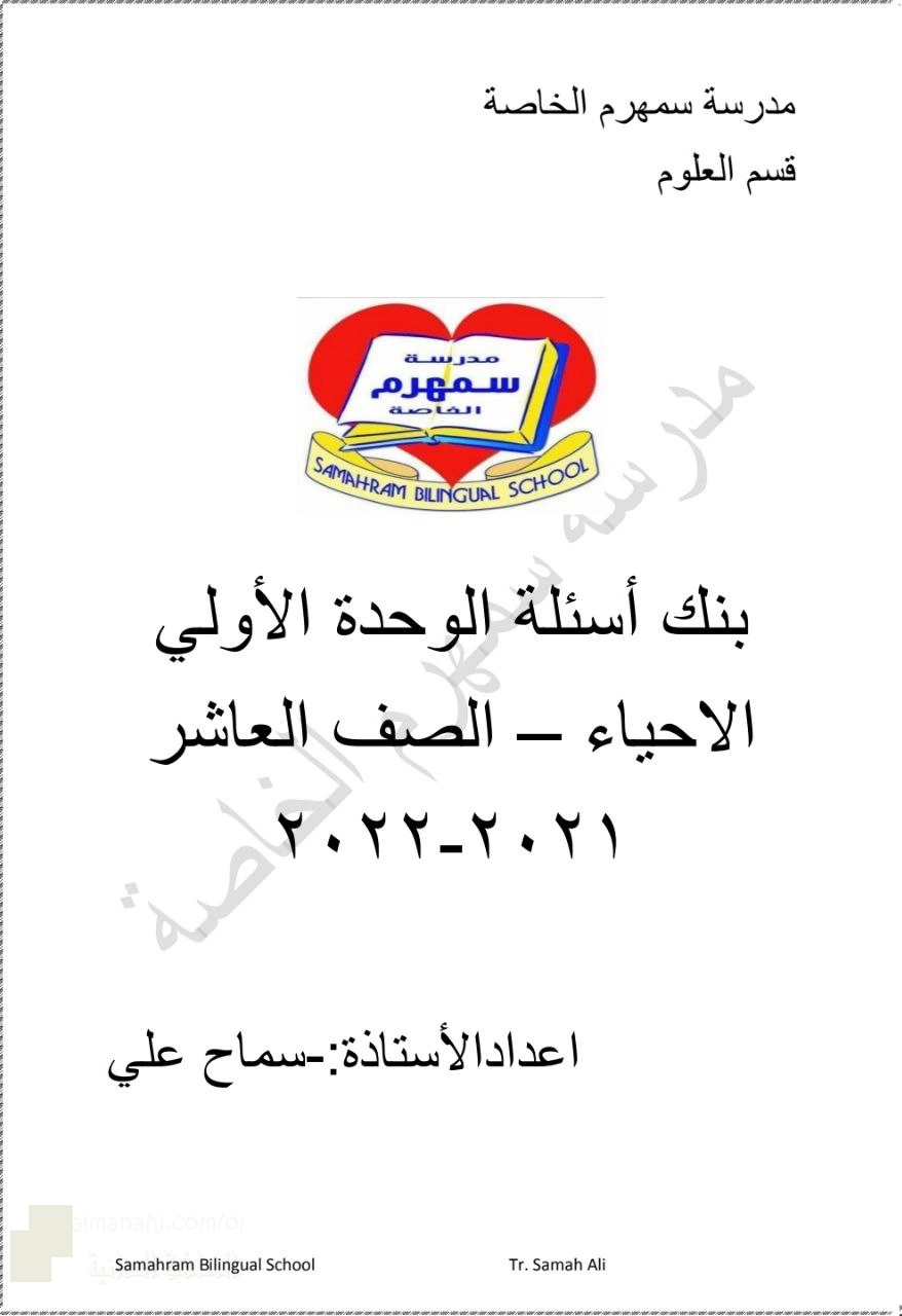 10. الصف العاشر, أحياء, بنك أسئلة الوحدة الأولى (النقل في الثديات)