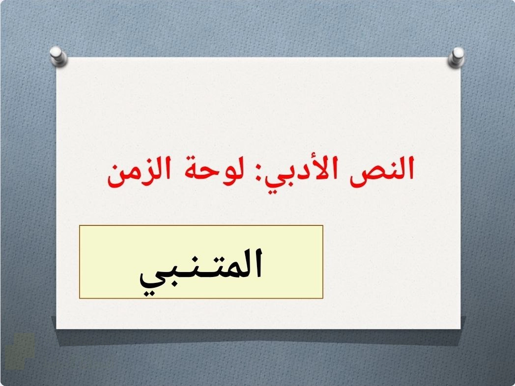 5. الصف التاسع, لغة عربية, عرض بوربوينت للنص الأدبي لوحة الزمن للمتنبي