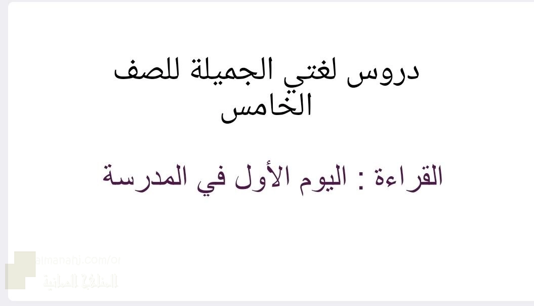 5. الصف الخامس, لغة عربية, عرض بوربوينت لدرس القراءة (اليوم الأول في المدرس)