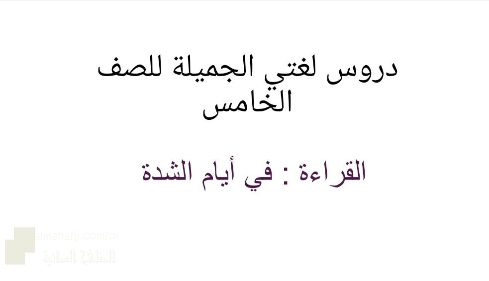 3. الصف الخامس, لغة عربية, عرض بوربوينت لدرس القراءة في أيام الشدة