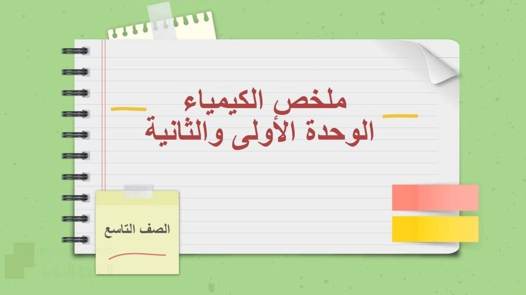 2. الصف التاسع, كيمياء, ملخص الوحدتين الأولى (طبيعة المادة) والثانية (التركيب الذري)