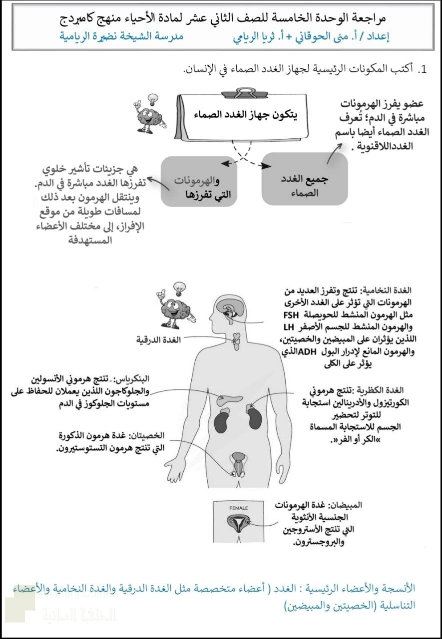 1. أحياء, الفصل الأول, 2025/2026, مراجعة الوحدة الخامسة التحكم والتنسيق بطريقة الأسئلة والأجوبة وفق منهج كامبريدج