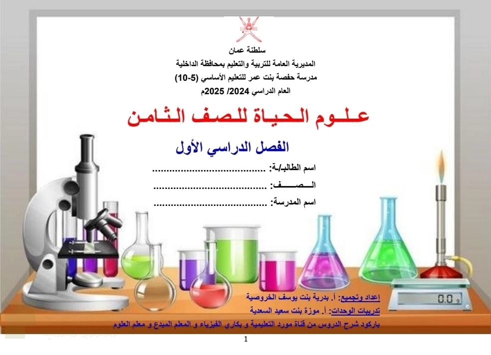 1. الصف الثامن, علوم, ملخص دروس المنهج