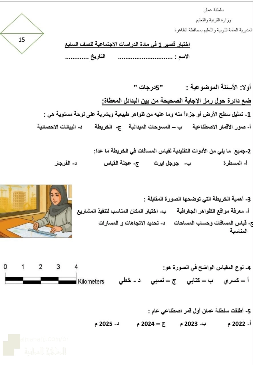 أنت هنا: موقع المناهجالمناهج العمانية الصف السابع اجتماعيات الفصل الأول اختبارات