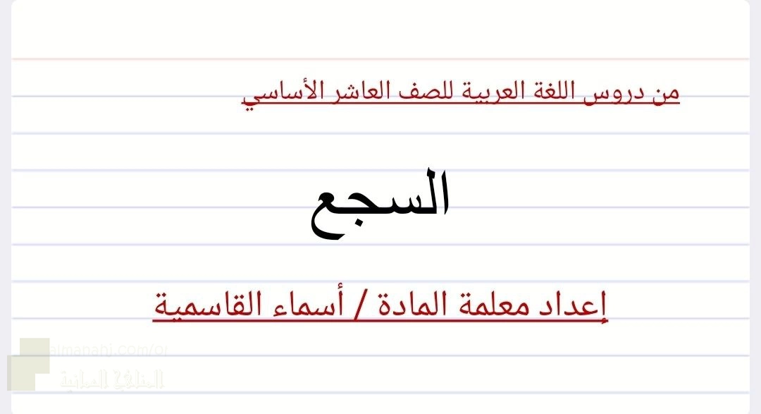 3. الصف العاشر, لغة عربية, ملخص درس السجع