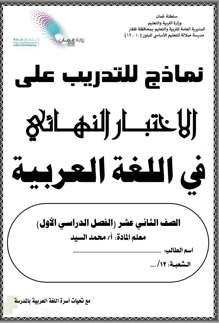 3. الصف الثاني عشر, لغة عربية, نماذج للتدريب على الاختبار النهائي
