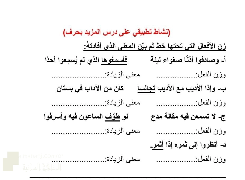 نشاط تطبيقي على درس المزيد بحرف