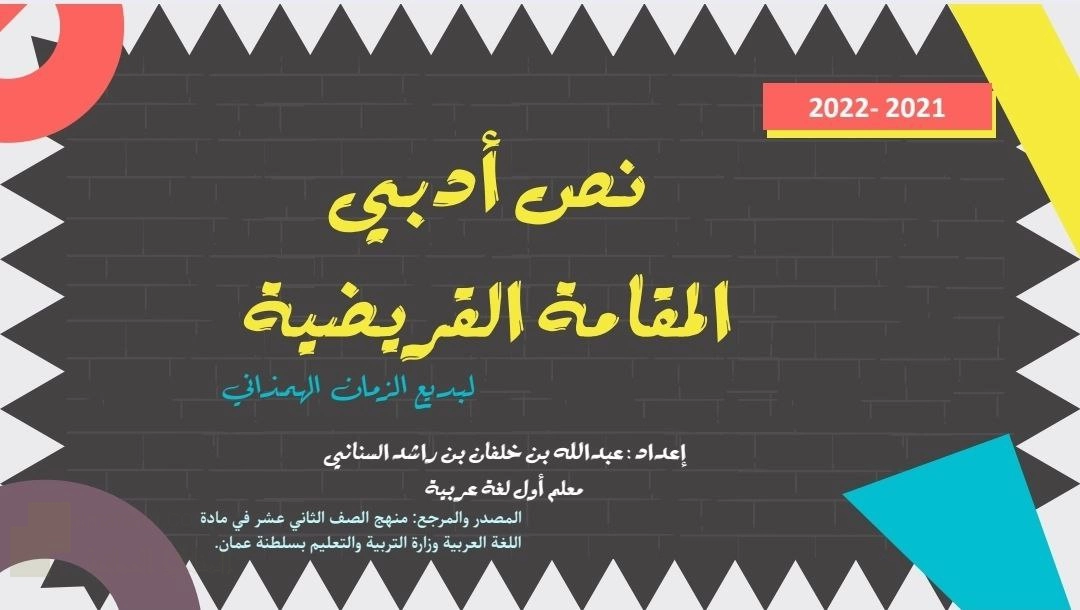 15. الصف الثاني عشر, لغة عربية, تحليل درس المقامة القريضية