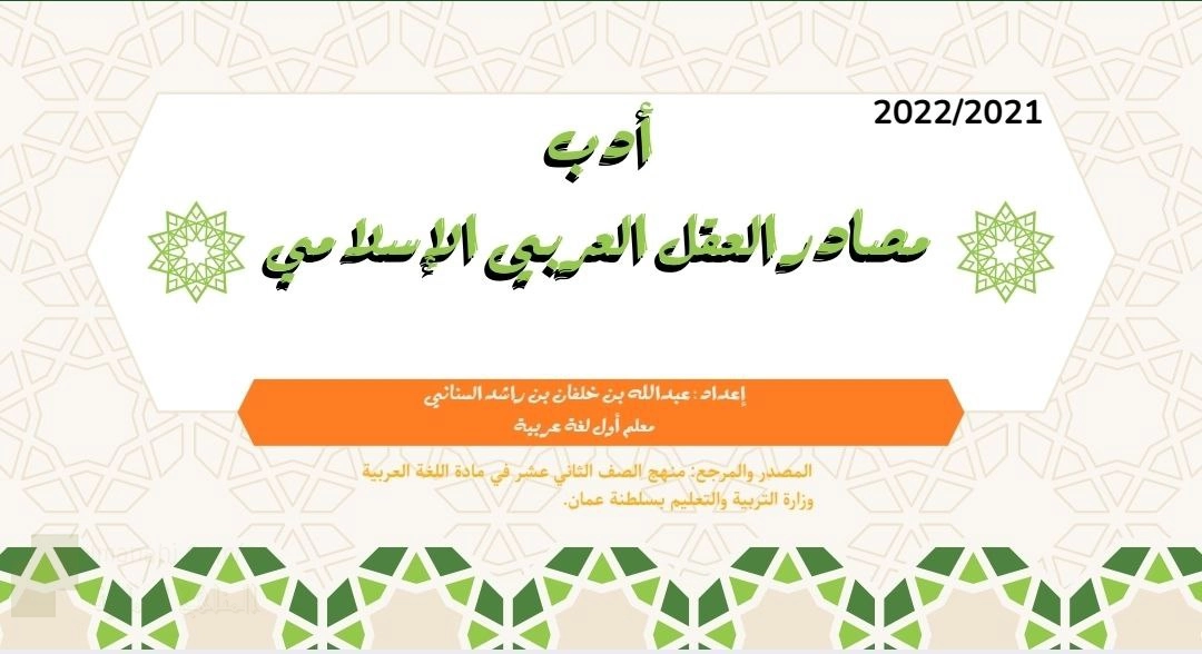 12. الصف الثاني عشر, لغة عربية, عرض بوربوينت لدرس مصادر العقل العربي الإسلامي
